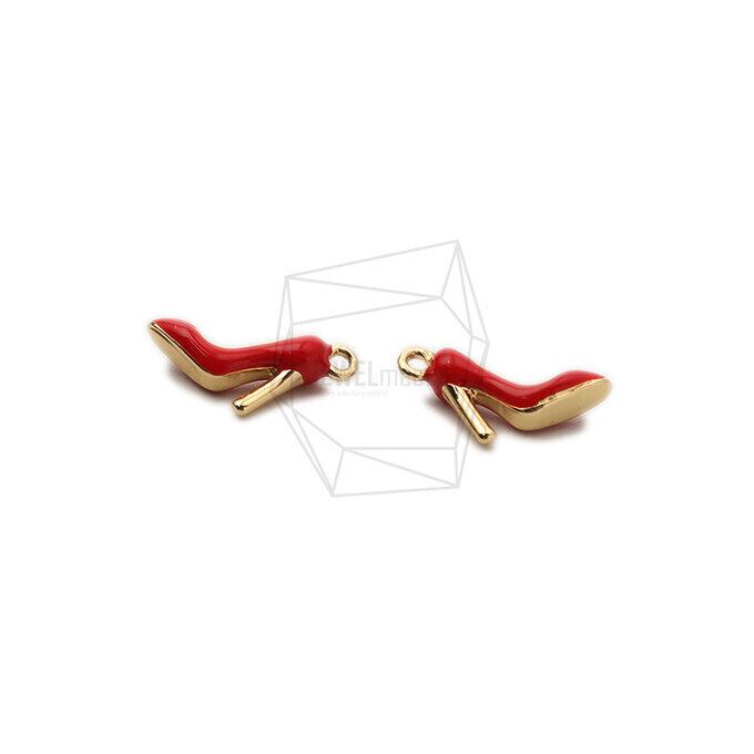 PDT-2472-G/2PCS/Epoxy High heels Pendant /12mm X 12mm/Gold Plated Over Brass
