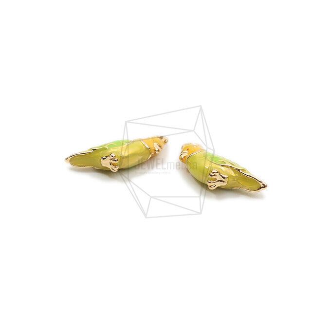 PDT-2475-G/2PCS/Epoxy parrot Pendant/ 6mm X 14mm/Gold Plated Over Brass