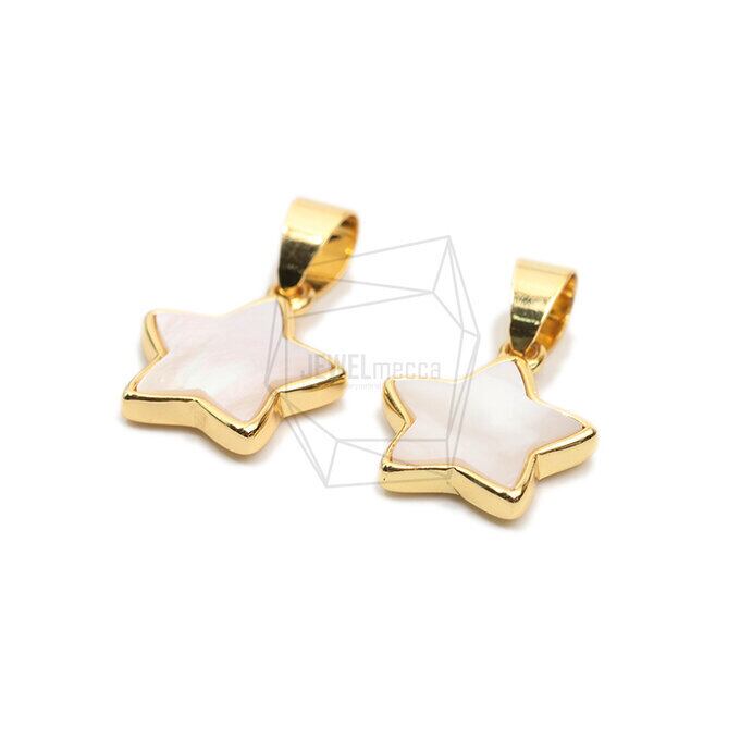 PDT-2484-G/1PCS/Star Mother of Pearl Pendant/14mm X 14mm/Gold Plated Over Brass