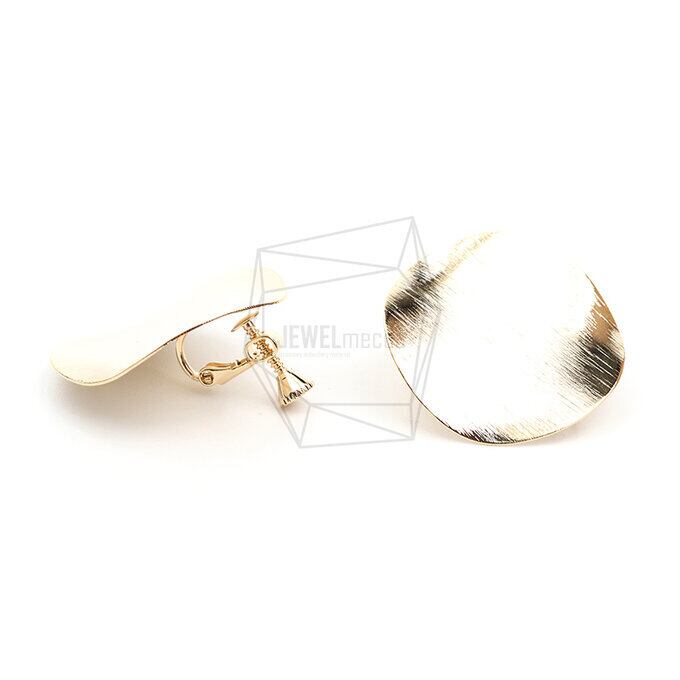 ERG-1802-G/2PCS/Wave Discs Brushed Texture Non Pierced Screw Back Clips Earring/30mm X 30mm/Gold Plated Over Iron
