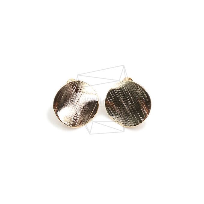 ERG-1803-G/2PCS/Wave Discs Brushed Texture Non Pierced Screw Back Clips Earring/20mm X 20mm/Gold Plated Over Iron