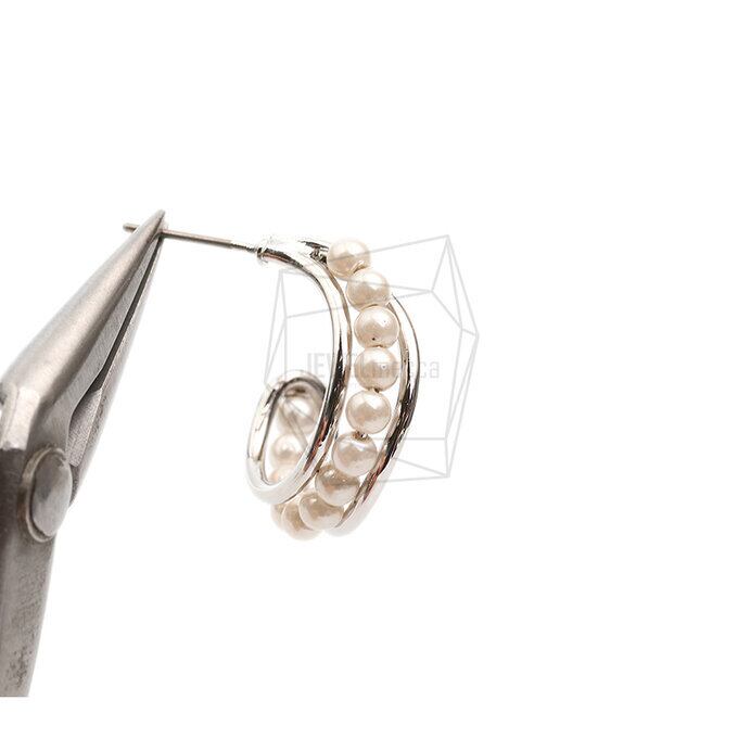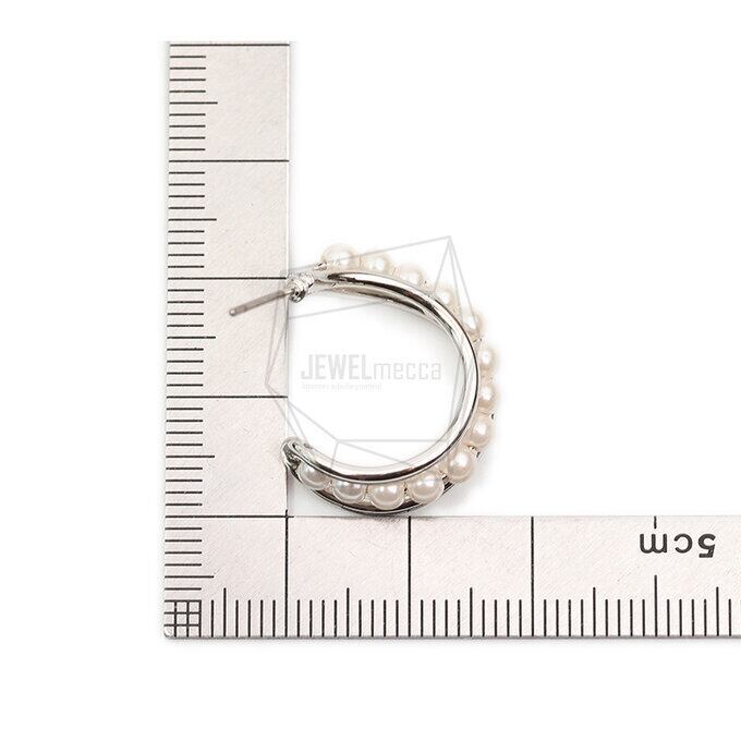 RG-1804-R/2PCS/Pearl round Post Earring /17mm X 21mm/Rhodium Plated Over Brass,Imitation pearl
