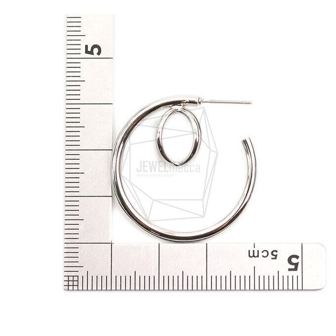 ERG-1811-R/2PCS/3D curve Post Earring/28mm x 30mm/Rhodium Plated Over Brass,Titanium post