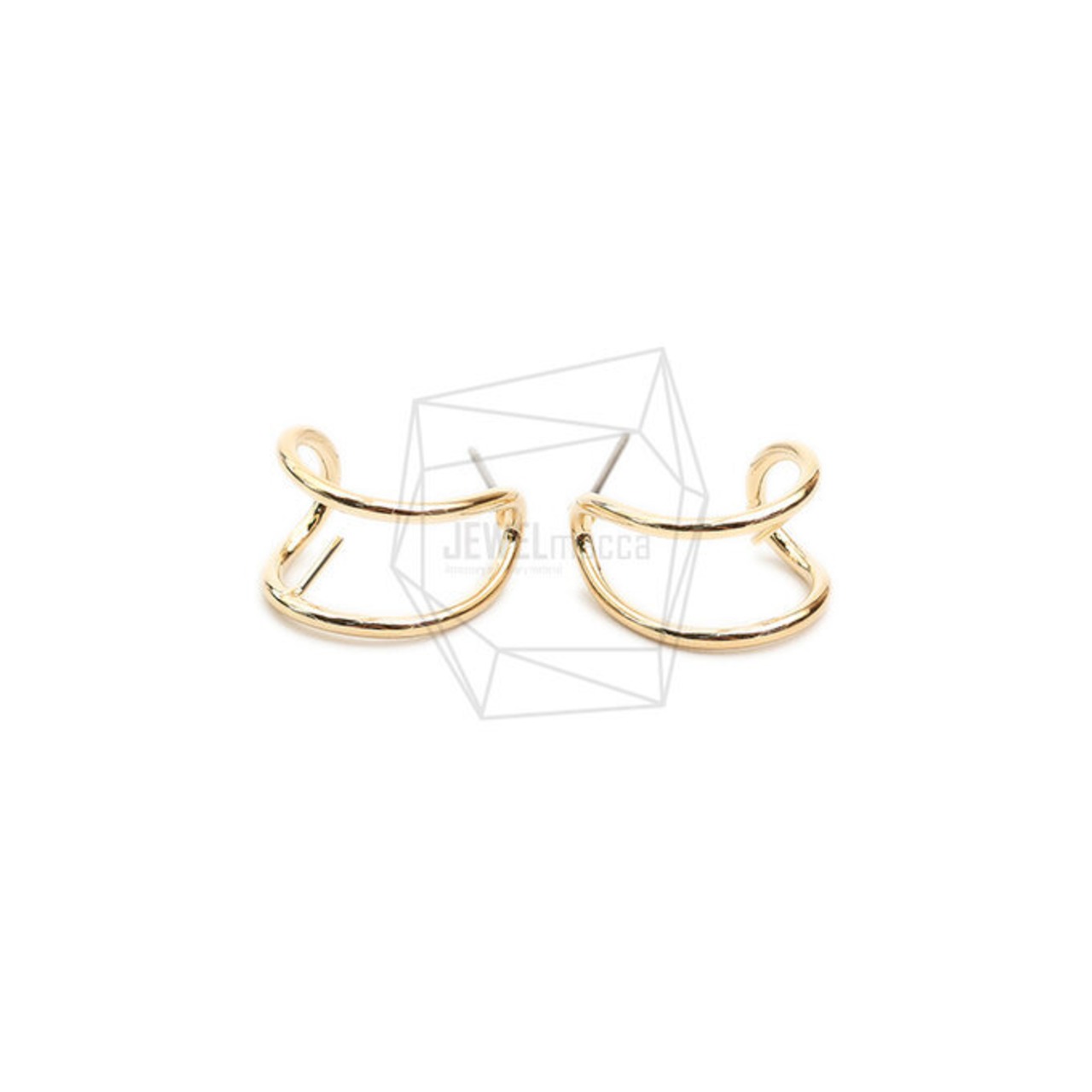 ERG-1813-G/2PCS/L shape post Earring,13mm x 17mm/Gold Plated Over Brass/Titanium post