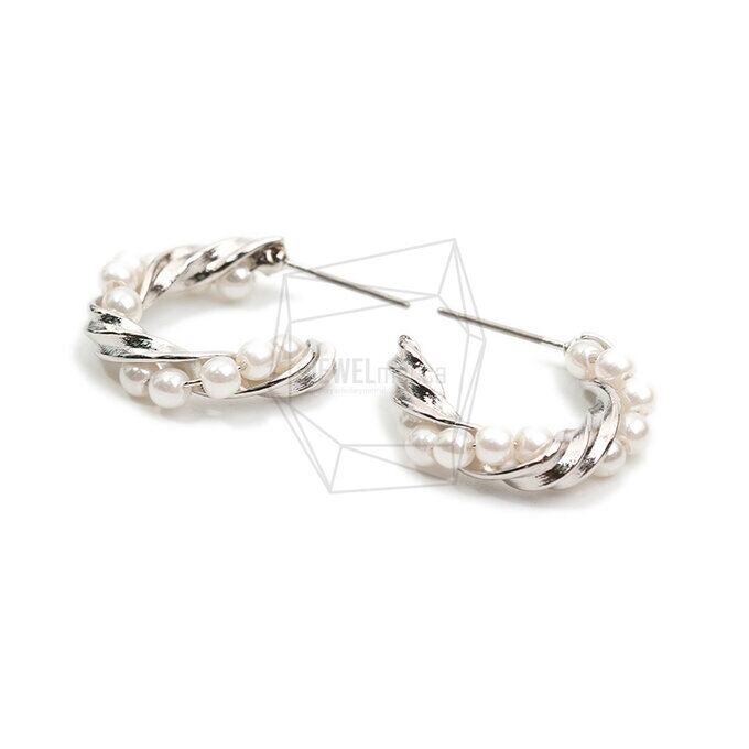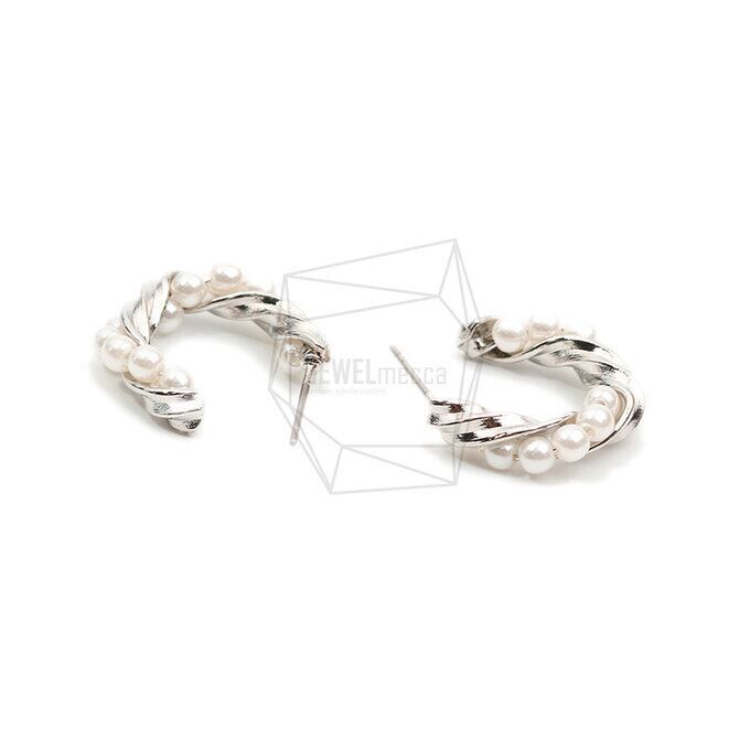 ERG-1818-R/2PCS/Pearl C shape Post Earring /18mm X 20mm/Rhodium Plated Over Brass,Imitation pearl,Titanium post