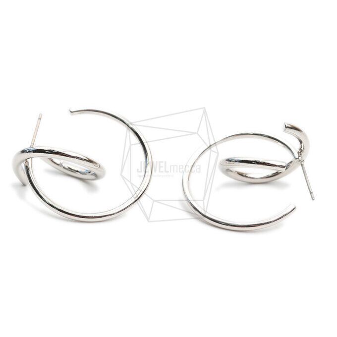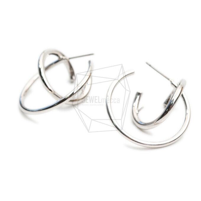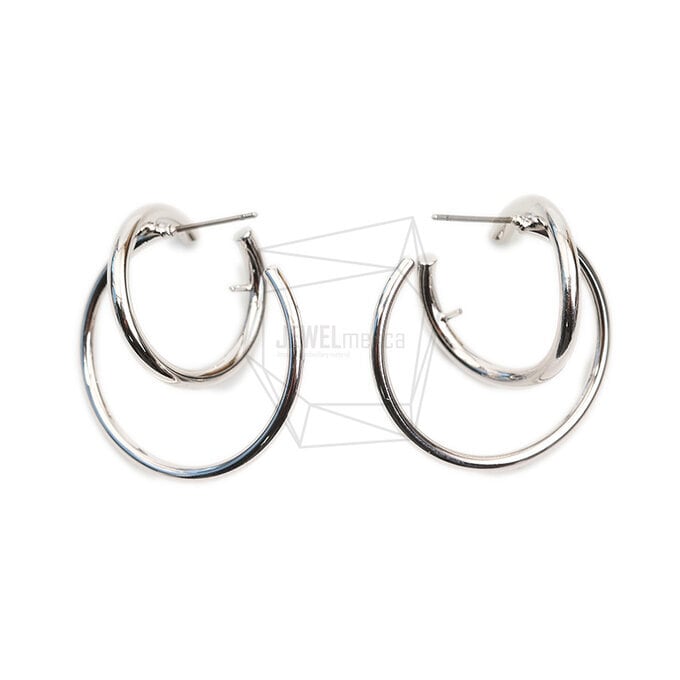 ERG-1834-R/2PCS/Double Round Post Earring/29mm X 31mm/Rhodium Plated Over Brass,Stainless Post