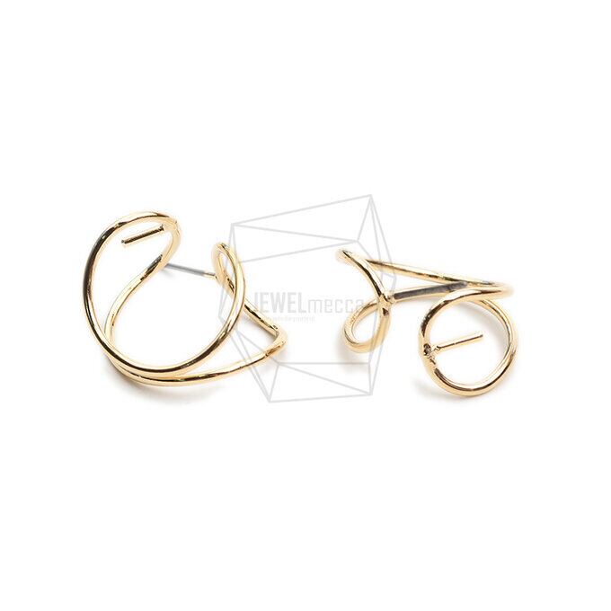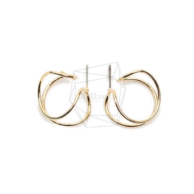 ERG-1835-G/2PCS/Double Round Post Earring/18mm X 19mm/Gold Plated Over Brass,Stainless Post