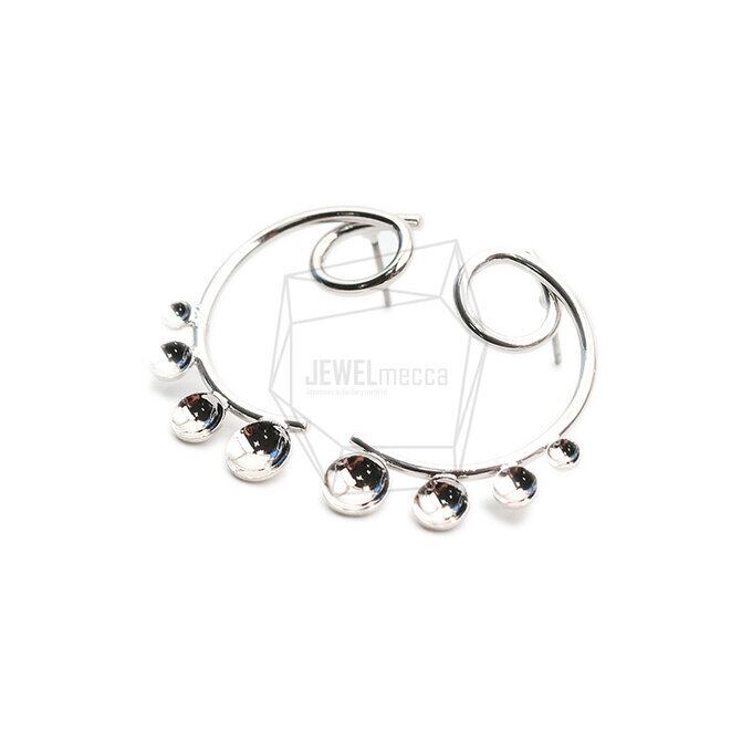 ERG-1837-R/2Pcs-Multi Pearl Cup Post Earring / 19mm x 32mm /Rhodium Plated over Brass/Titanium post