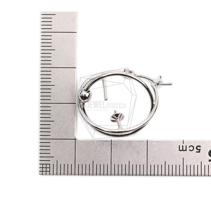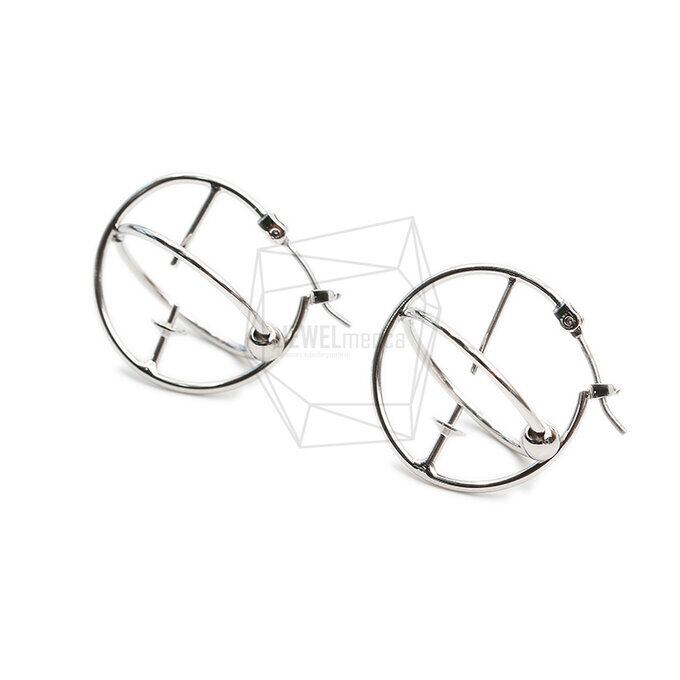 ERG-1844-R/2PCS/Double Round Post Earring/22mm X 23mm/Rhodium Plated Over Brass,Stainless Post