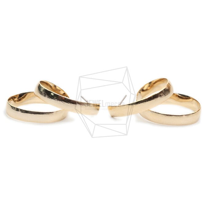 ERG-1845-G/2PCS/Curved Brushed Texture Post Earring/13mm X 36mm/Gold Plated Over Brass,Titanium Post