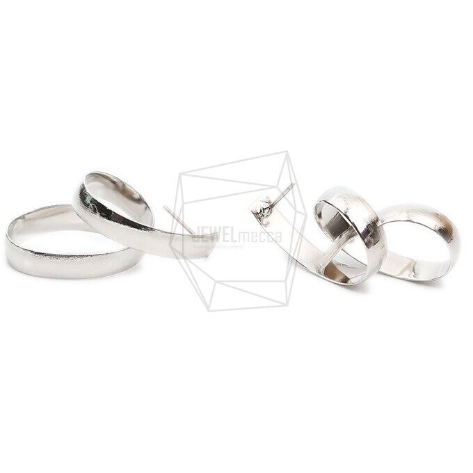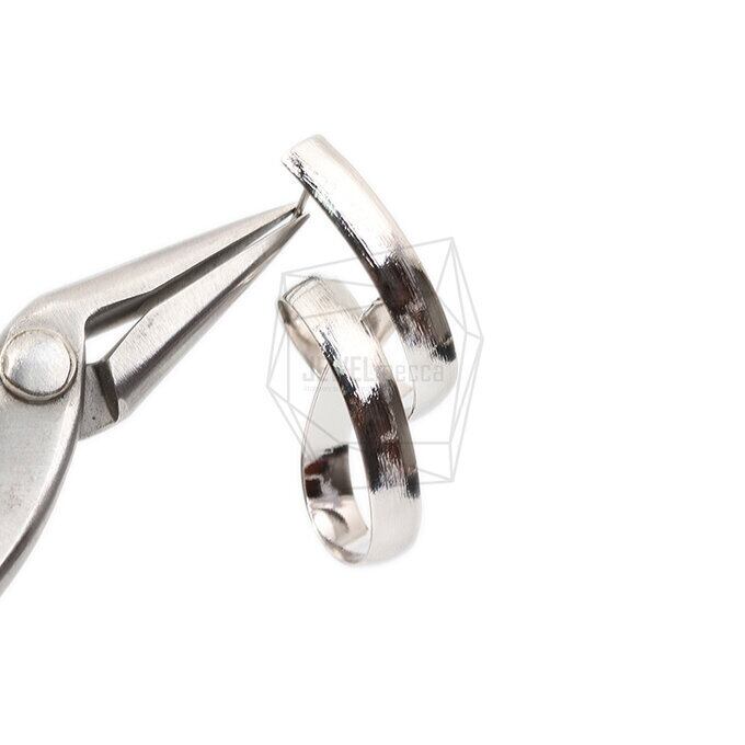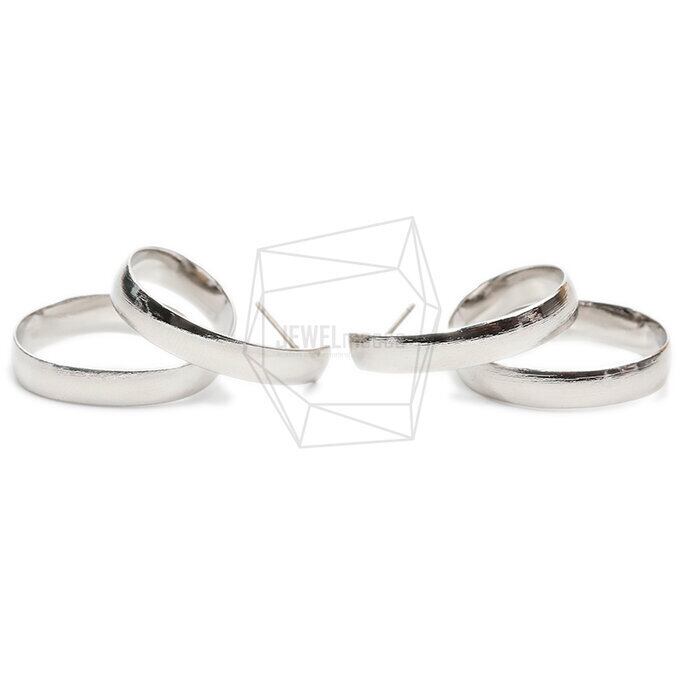 ERG-1845-R/2PCS/Curved Brushed Texture Post Earring/13mm X 36mm/Rhodium Plated Over Brass,Titanium Post