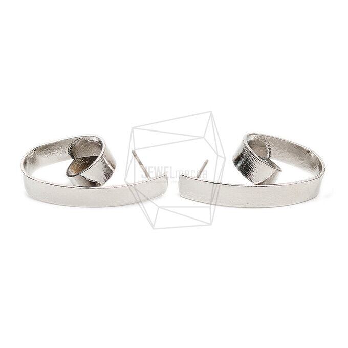 ERG-1847-R/2PCS/Curved Brushed Texture Post Earring/11mm X 30mm/Rhodium Plated Over Brass,Titanium Post