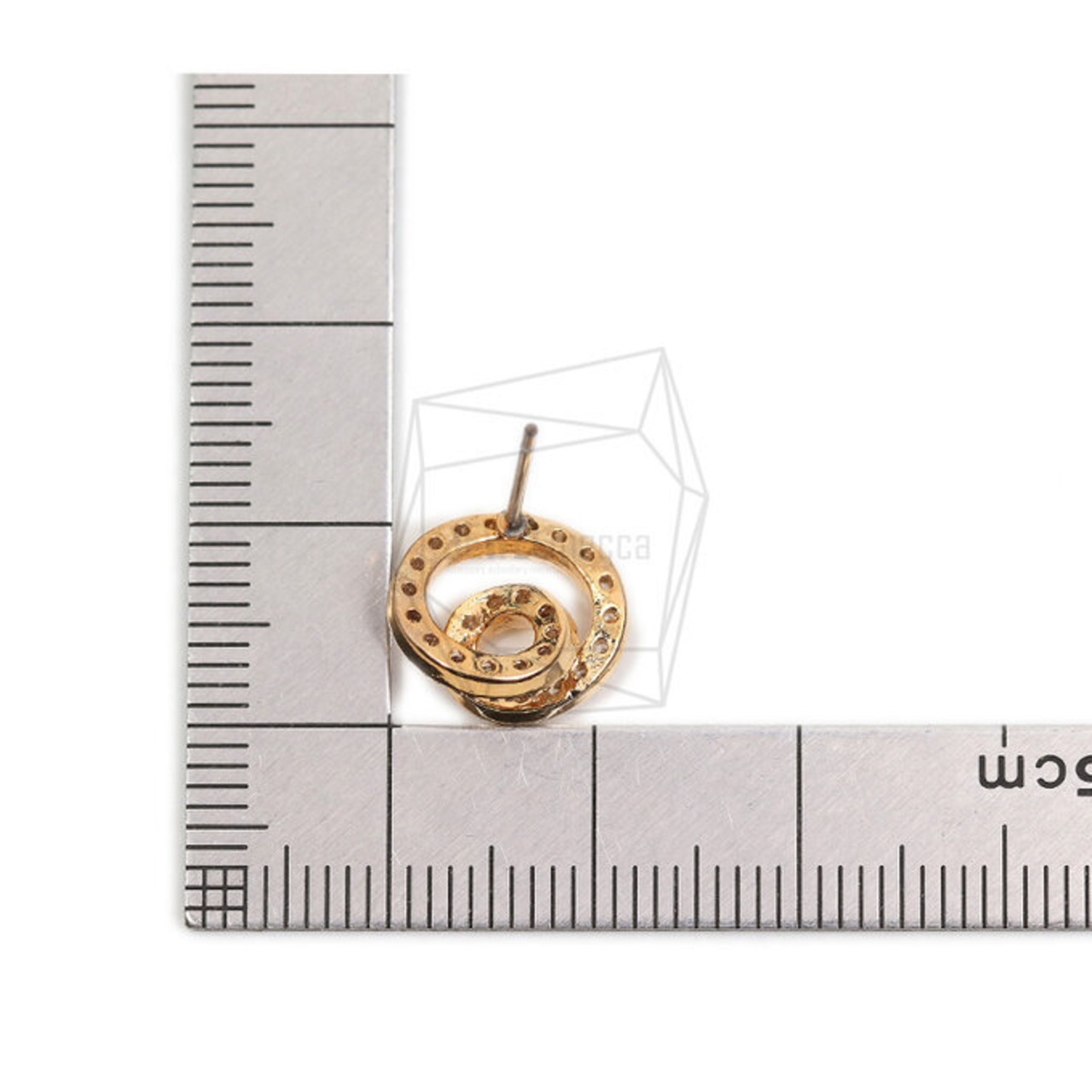 ERG-1850-G/2PCS/Round CZ Post Earring/10mm x 12mm/Gold Plated over Brass,Cubic Zirconia,silver post