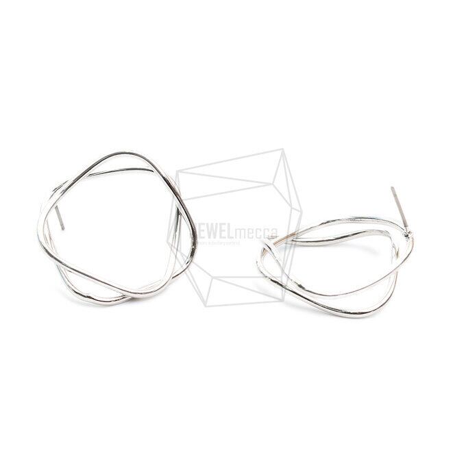 ERG-1851-R/2PCS/Double round wire Post Earring/25mm x 28mm/Rhodium Plated over Brass,Titanium post