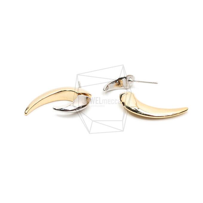ERG-1884-GR/2セット/Round Post Earring/16mm X 24mm/Gold Plated Over Brass,Rhodium Plated Over Brass,Titanium post