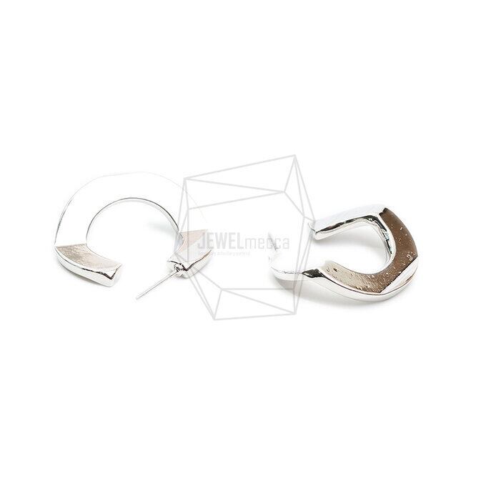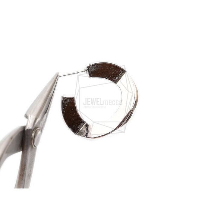 ERG-1852-R/2Pcs-Round Ear Post/ 22mm x 27mm /Rhodium Plated over Brass,Stainless Post