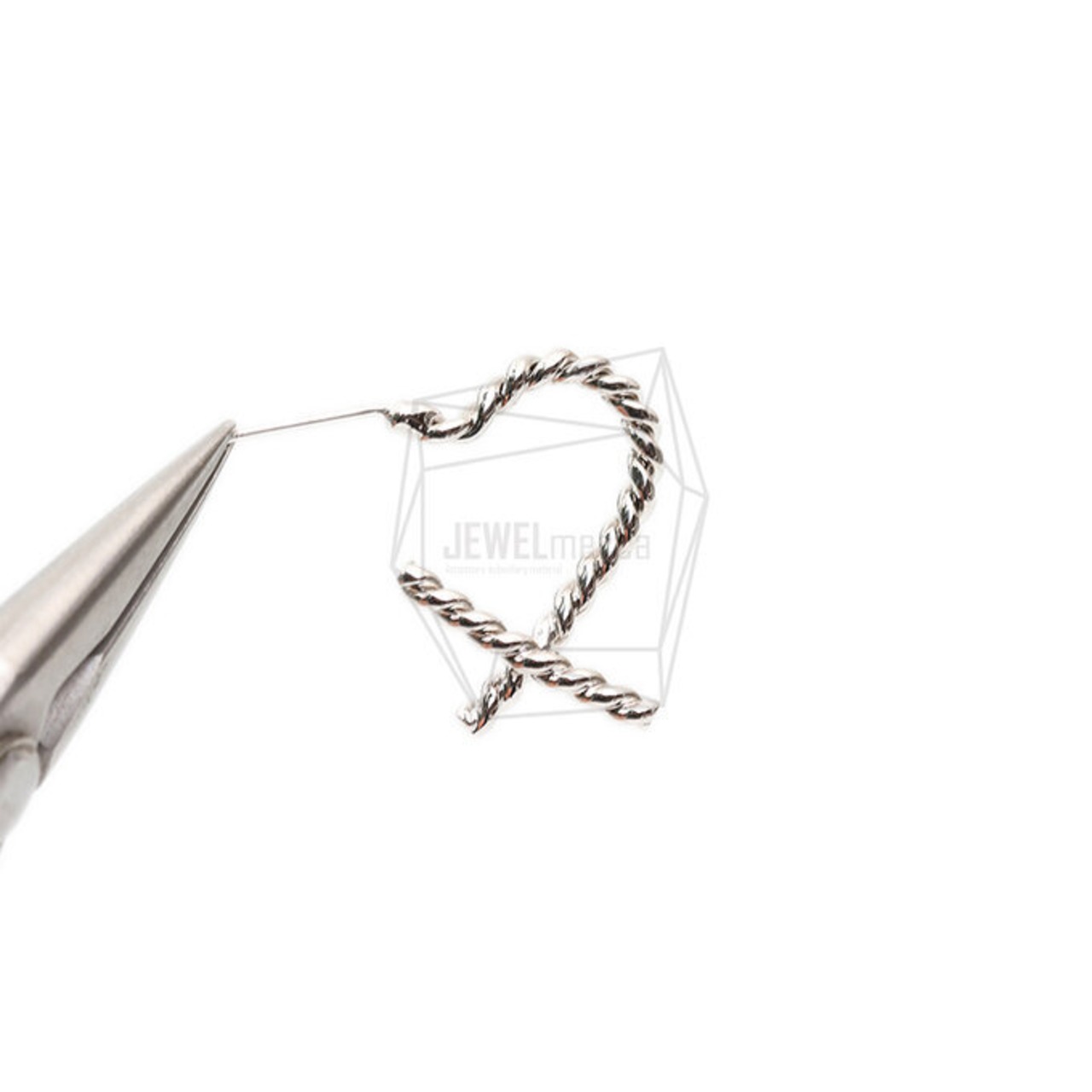 ERG-1857-R/2PCS/Heart Earring Post/16mm x 23mm/Rhodium Plated over Brass
