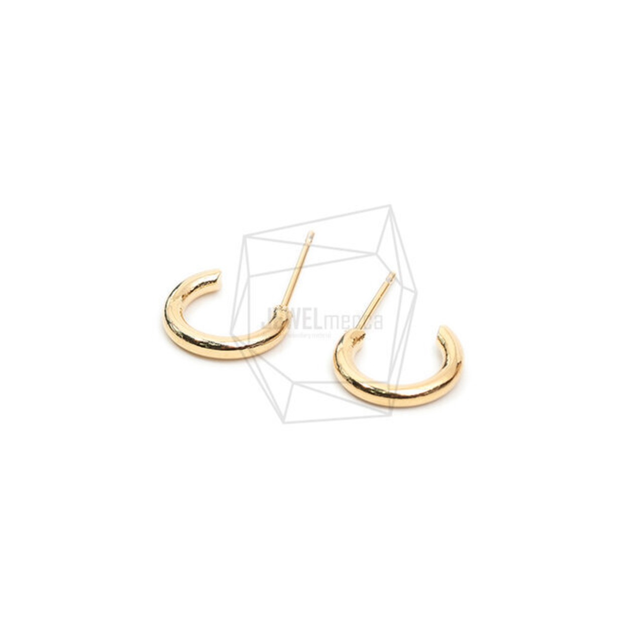 ERG-1858-G/2PCS/Hoop Post Earrings/10mm X 12mm/Gold Plated Over Brass