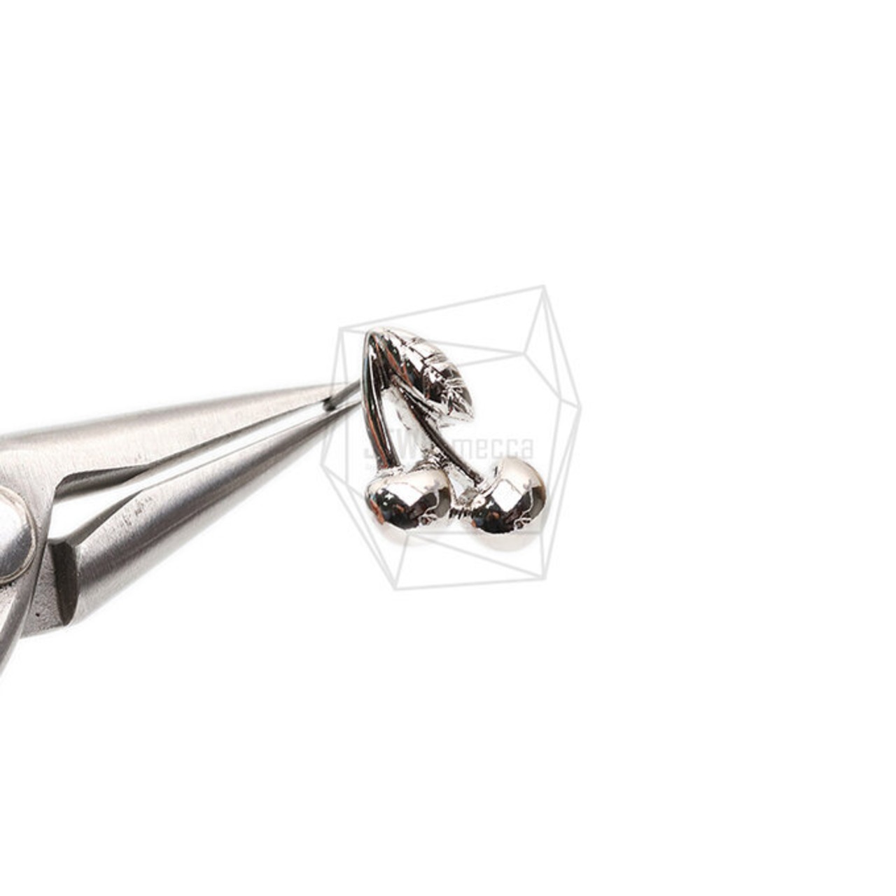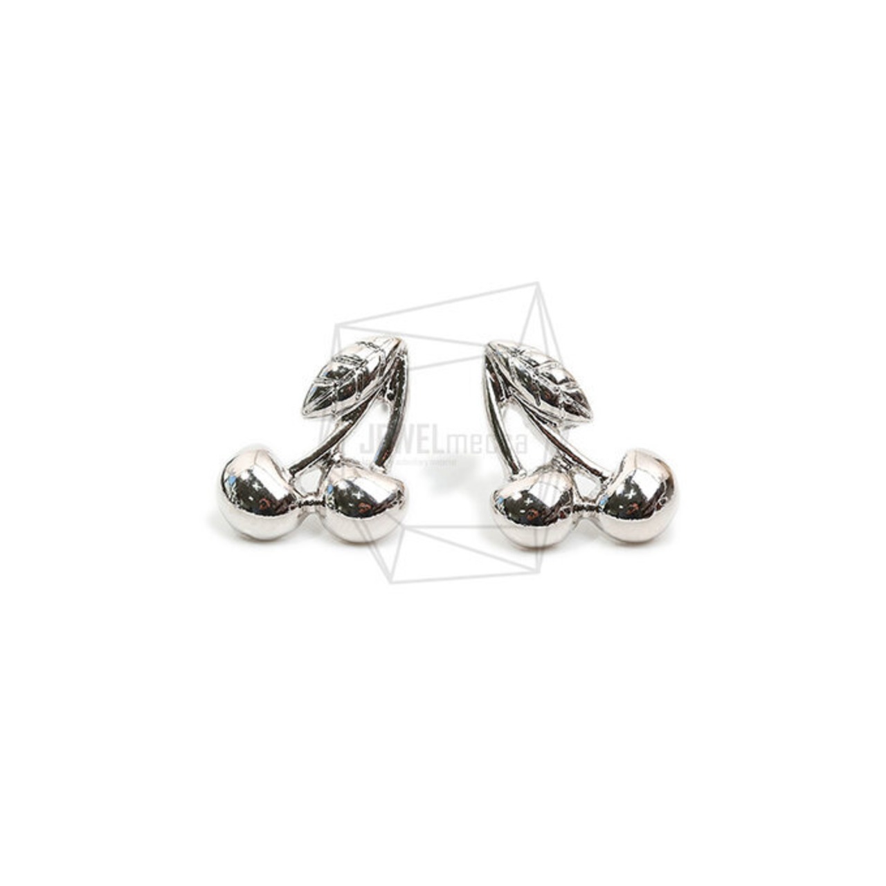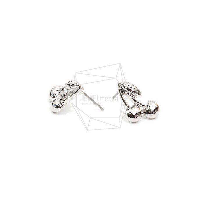 ERG-1860-R/2PCS/Cubic Cherry Pendant/12mm X 14mm/Rhodium Plated Over Tin,Stainless Post