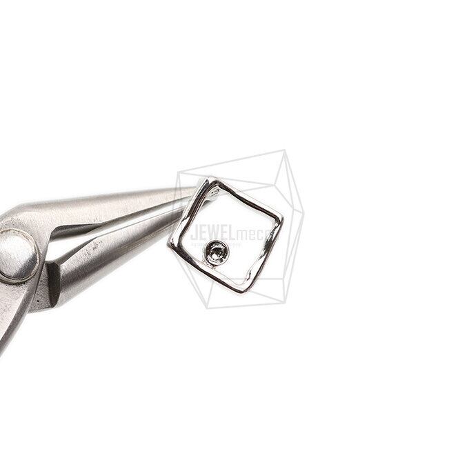 ERG-1862-R/2PCS/Square Post Earring/15mm X 15mm/Rhodium Plated Over Tin,Stainless Post
