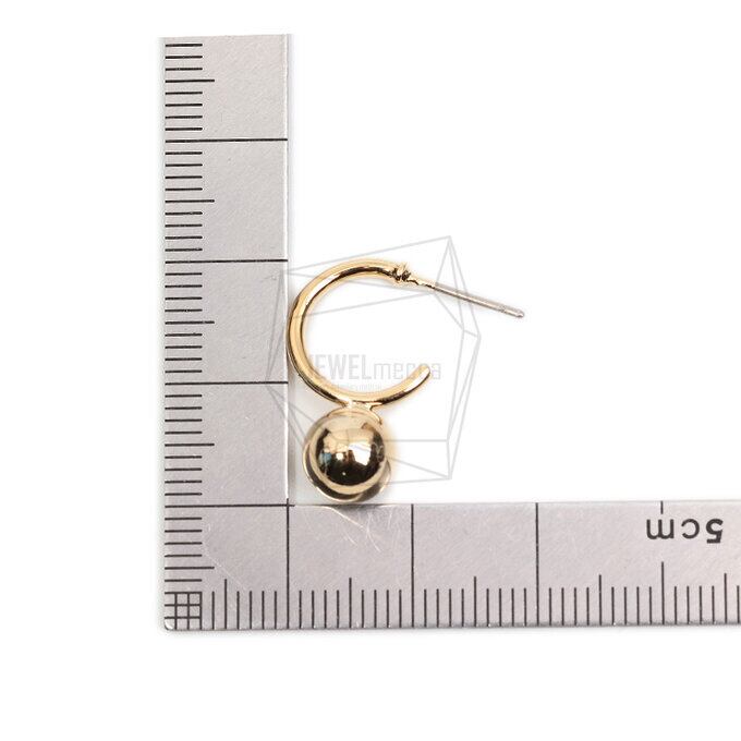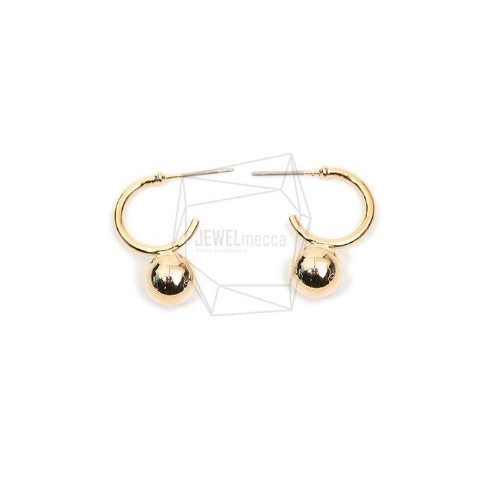 ERG-1871-G/2Pcs-Round ball Ear Post/ 13mm x 21mm/Gold Plated over Brass,Titanium post