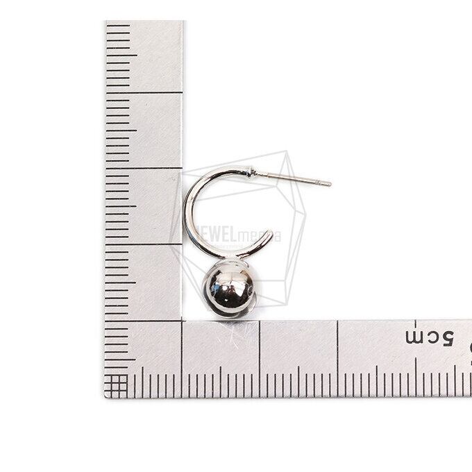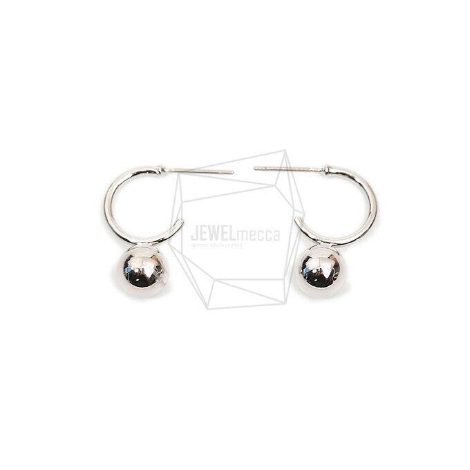 ERG-1871-R/2Pcs-Round ball Ear Post/ 13mm x 21mm/Rhodium Plated over Brass,Titanium post