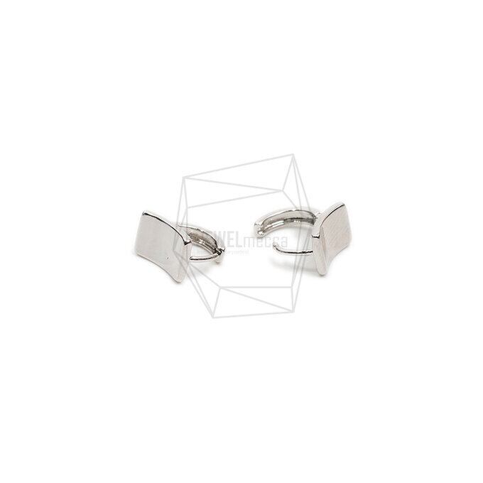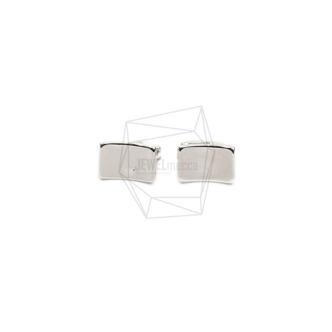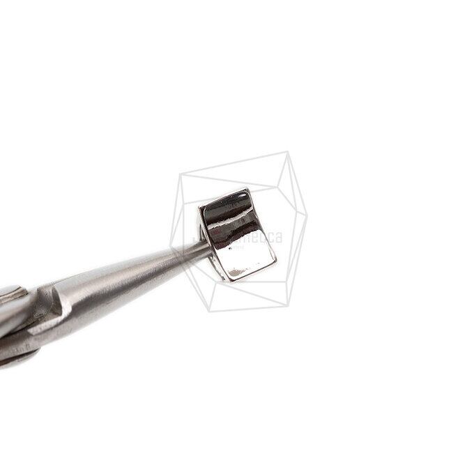 ERG-1874-R/2PCS/Square One touch Post Earring/6mm X 9mm/Rhodium Plated Over Brass
