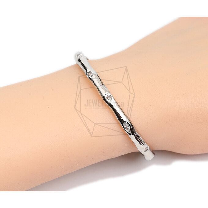 BRA-058-R/1Pcs-Band Cuff Bracelet/5.5mm thickness/Rhodium Plated over brass,CZ