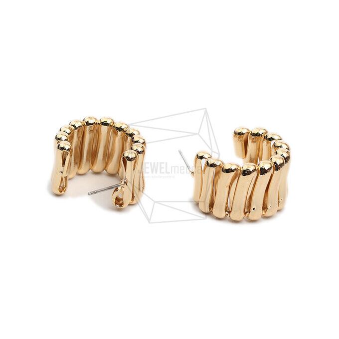 ERG-1894-G/2PCS/spring round Post Earring/18mm X 21mm/Gold Plated Over Brass,Stainless Post