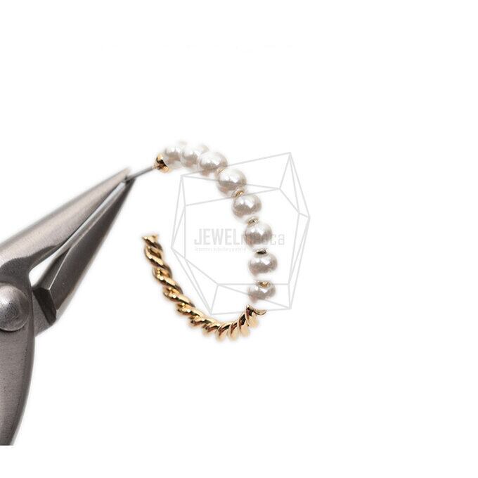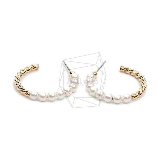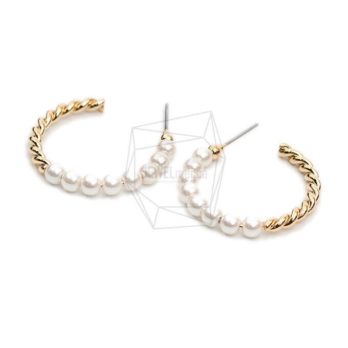 ERG-1896-G/2PCS/Pearl C shape Post Earring /25mm X 30mm/Gold Plated Over Brass,Imitation pearl,Stainless Post