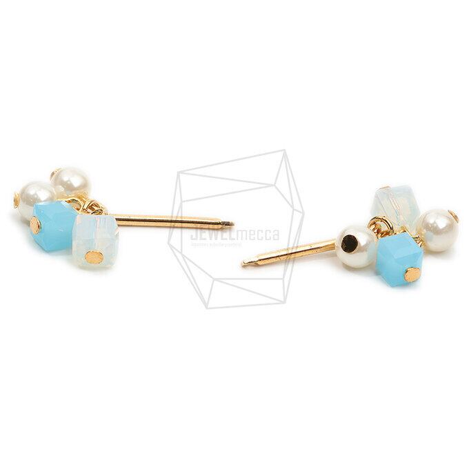 ERG-1907-G/2PCS/Pearl Tassel Earring Charm/18mm X 31mm/Gold Plated Over Brass,Imitation Pearl