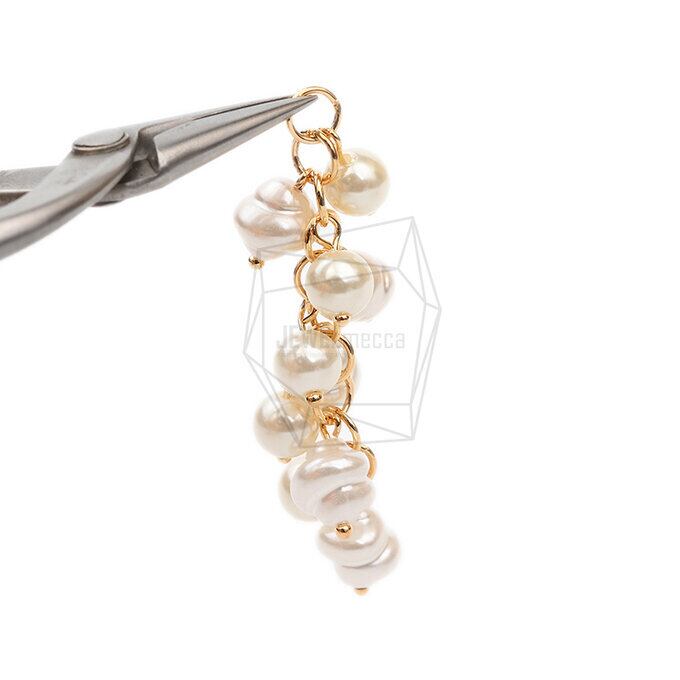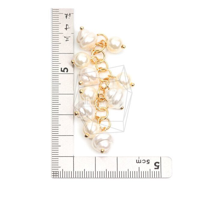 ERG-1908-G/2PCS/Pearl Tassel Earring Charm/25mm X 60mm/Gold Plated Over Brass,Imitation Pearl