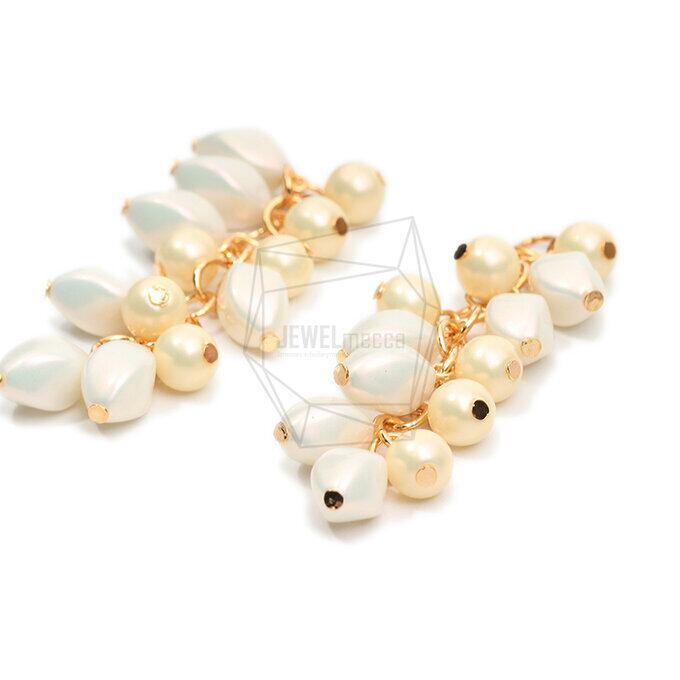 ERG-1909-G/2PCS/Pearl Tassel Earring Charm/28mm X 70mm/Gold Plated Over Brass,Imitation Pearl