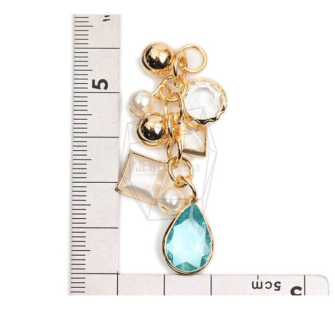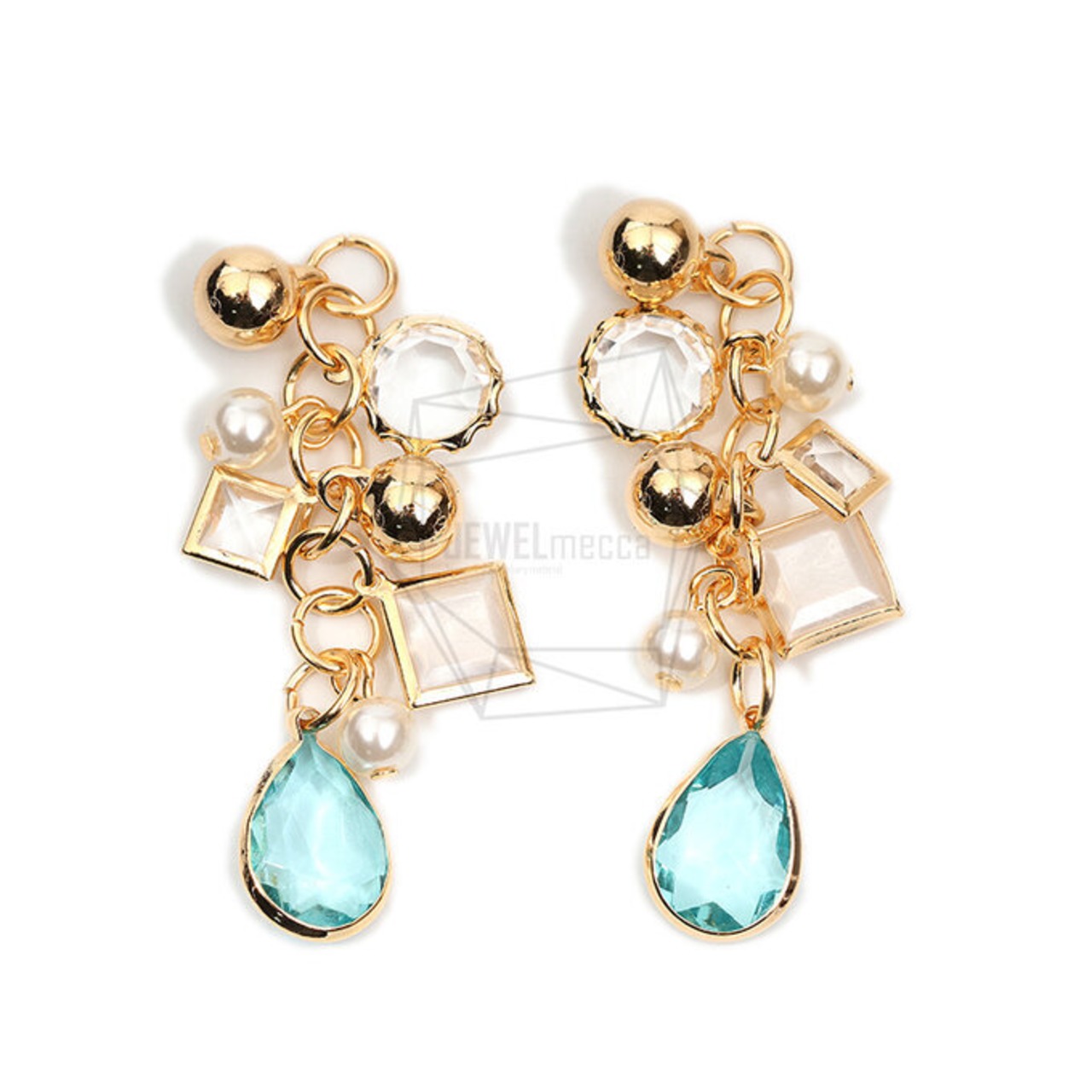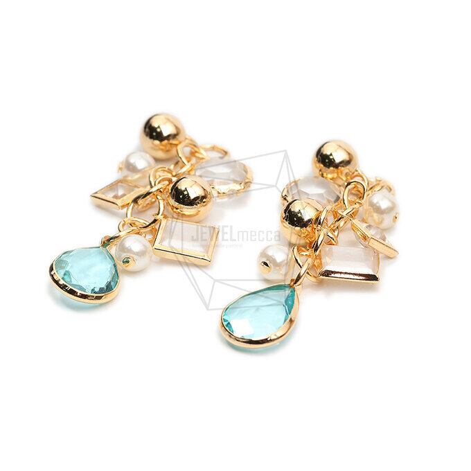ERG-1911-G/2PCS/Pearl Tassel Earring Charm/20mm X 50mm/Gold Plated Over Brass,Imitation Pearl