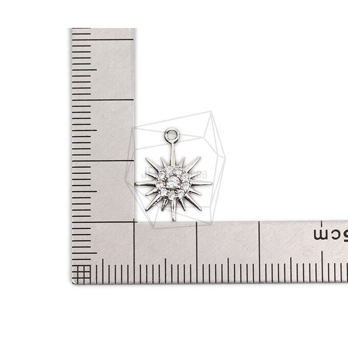 PDT-2504-R/2PCS/Cubic Sun Pendant/12mm X 15mm/Gold Plated Over Brass,Cubic Zirconia