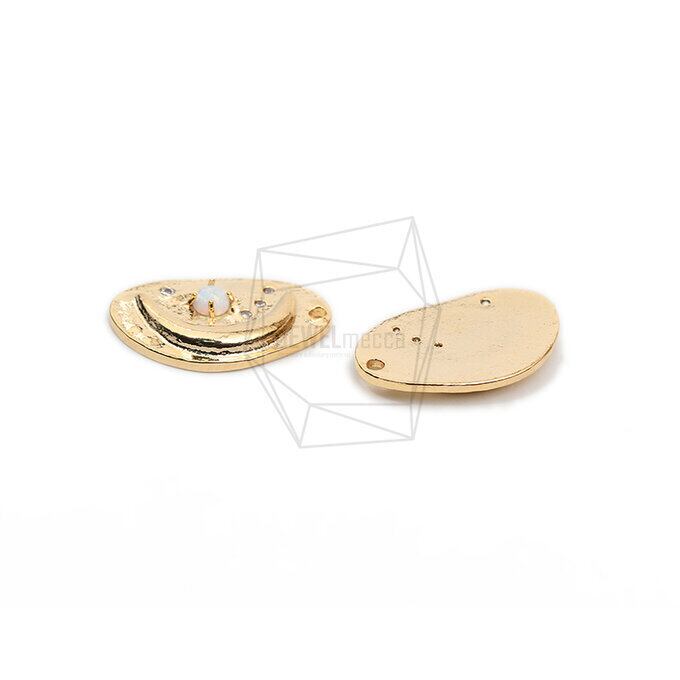 PDT-2505-G/2Pcs-Moon Fossil Pendant/ 11mm x 18mm /Gold Plated over brass,opal
