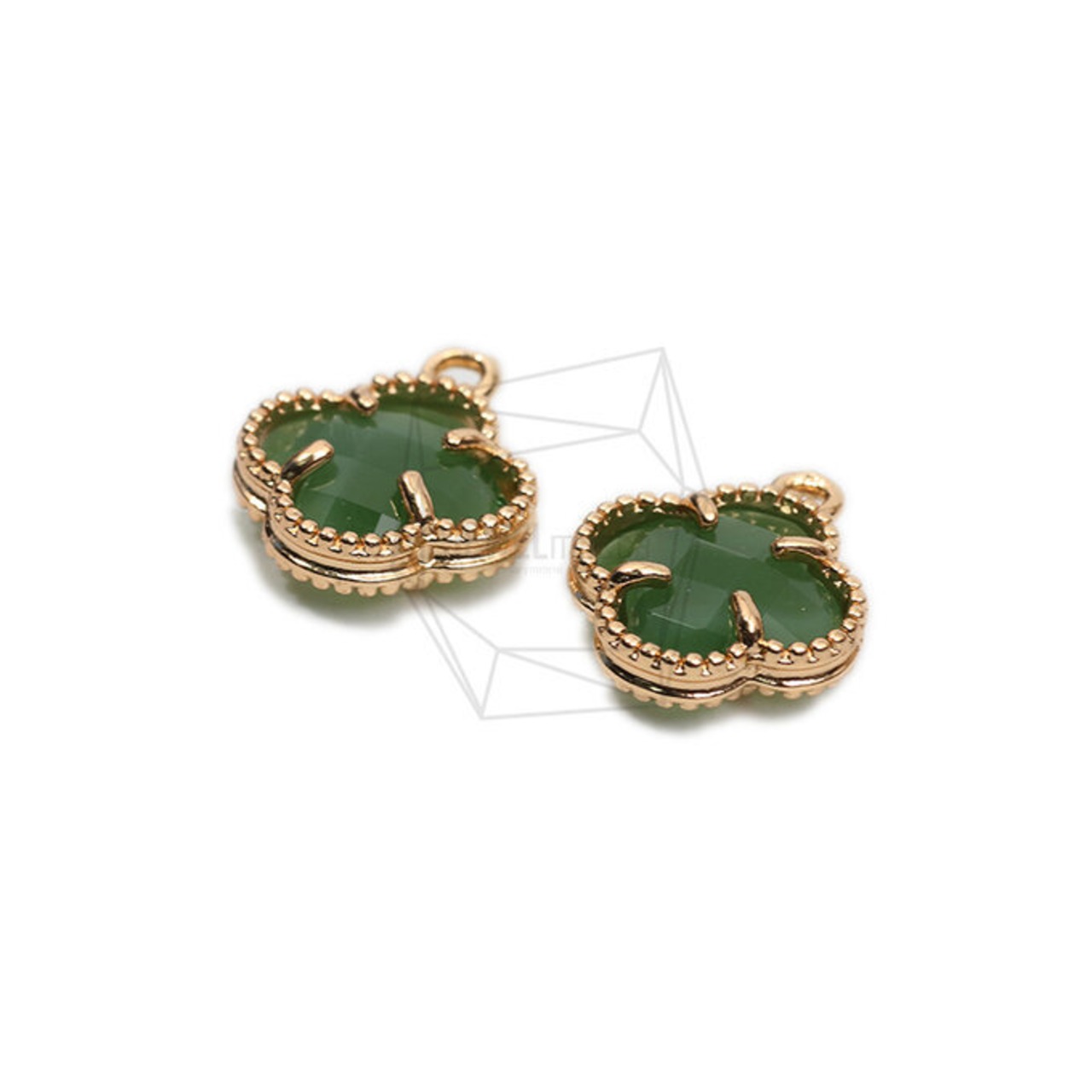 PDT-2509-G/2Pcs-Clover Glass Pendant /12mmx13mm /Gold Plated over brass,Glass