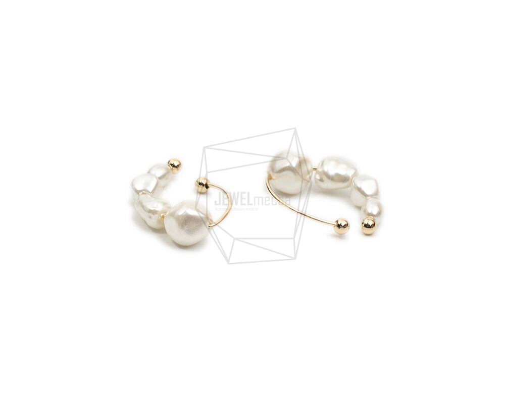 ERG-1921-G/2PCS/Round Earcuffs Earrings/18mm X 25mm/Gold Plated Over Brass,Imitation pearl