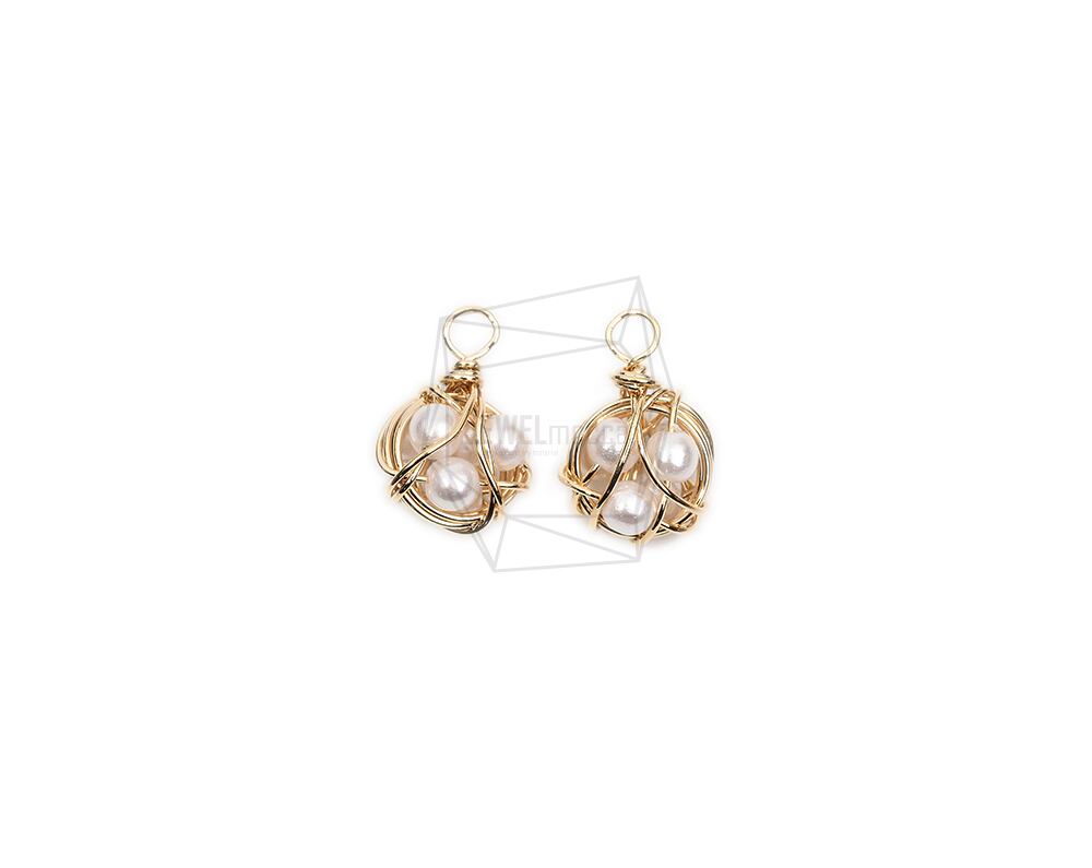 PDT-2513-G/2pcs/Wire round Pearl Pendant/12mm x 19mm/Gold Plated Over Brass