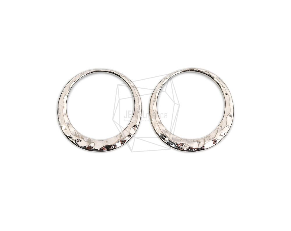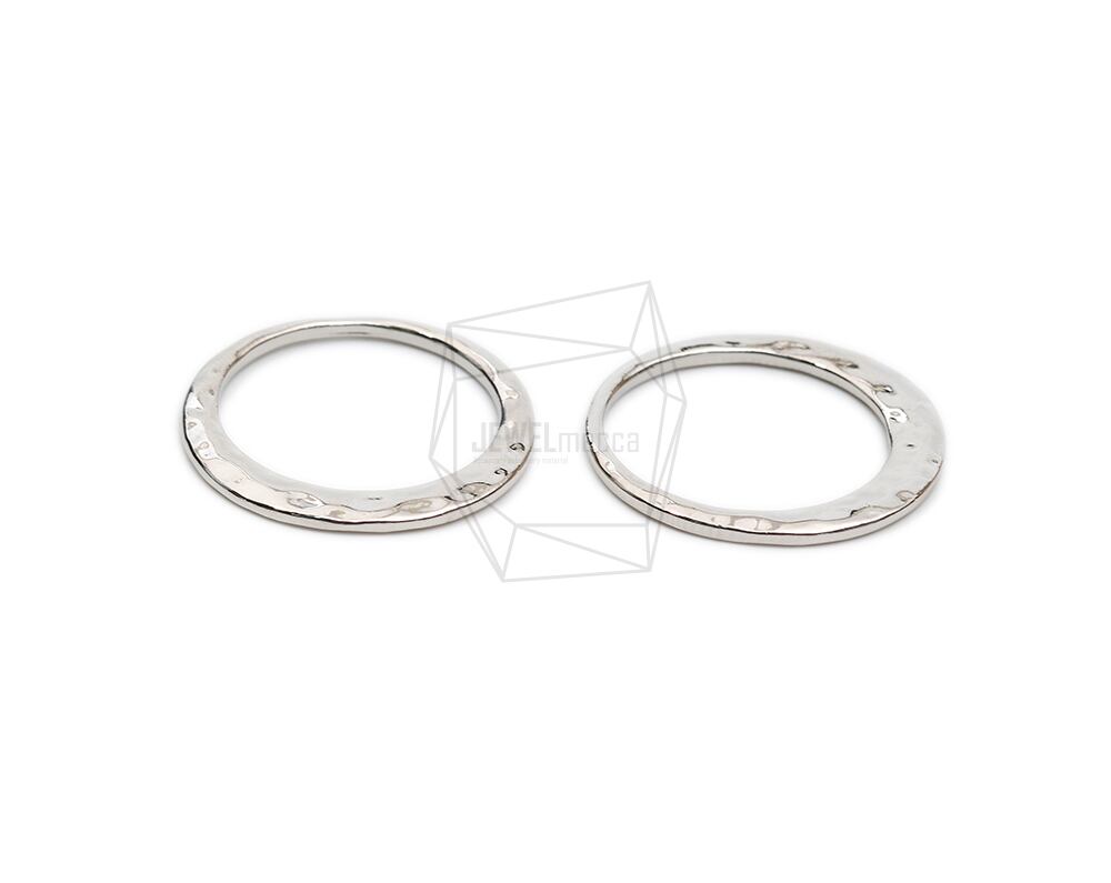 PDT-2515-R/4PCS/Hammered Round Pendant/25mm x 26mm/Rhodium Plated Over Tin