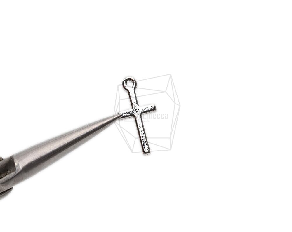 PDT-2519-R/2PCS/Thin Cross Pendant/8mm X 15mm/Rhodium Plated Over Brass
