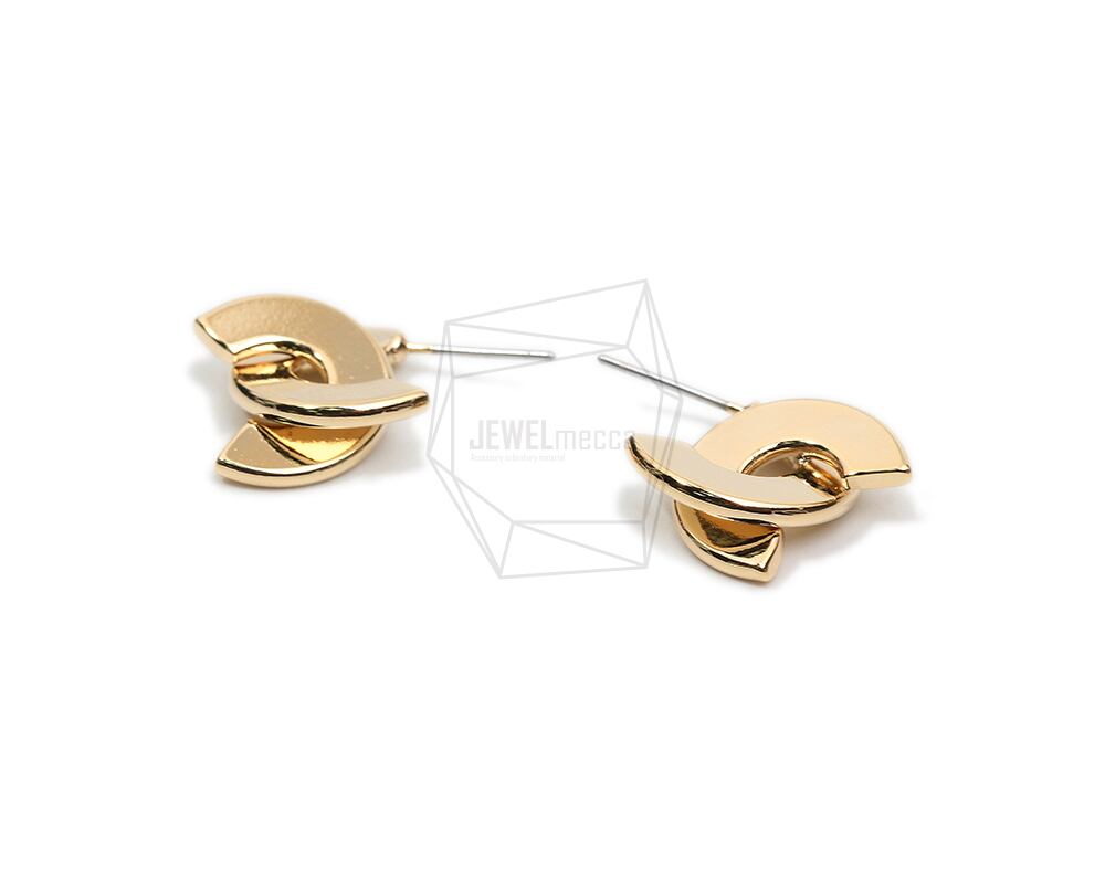 ERG-1926-G/2PCS/C Cross Post Earring/14mm X 16mm/Gold Plated Over Brass,Stainless Post