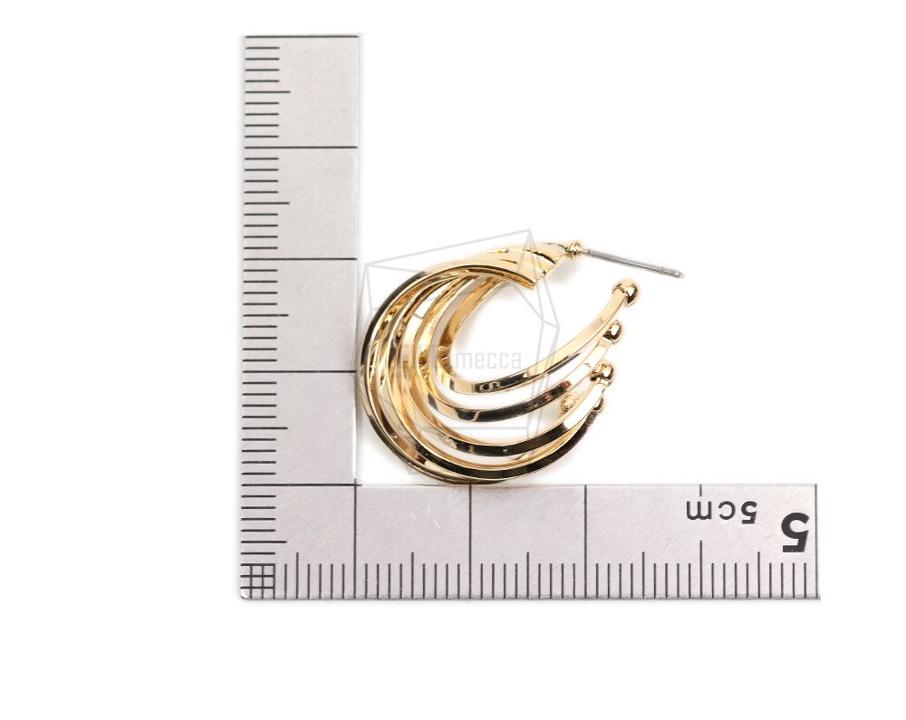 ERG-1927-G/2Pcs-Multi Round Post Earring / 20mm x 20mm /Gold Plated over brass,Stainless Post