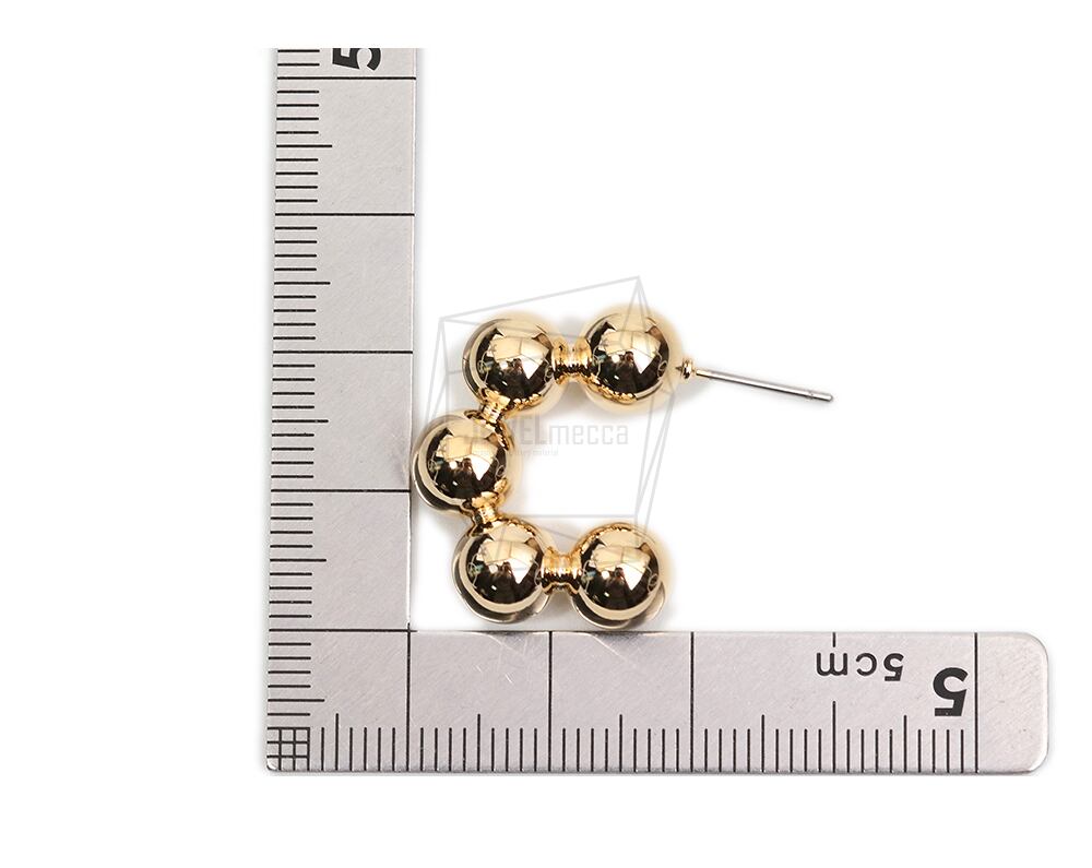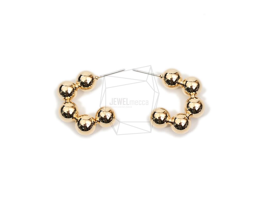 ERG-1929-G/2PCS/Multi ball round Post Earring/19mm X 23mm/Gold Plated over Brass,Stainless Post