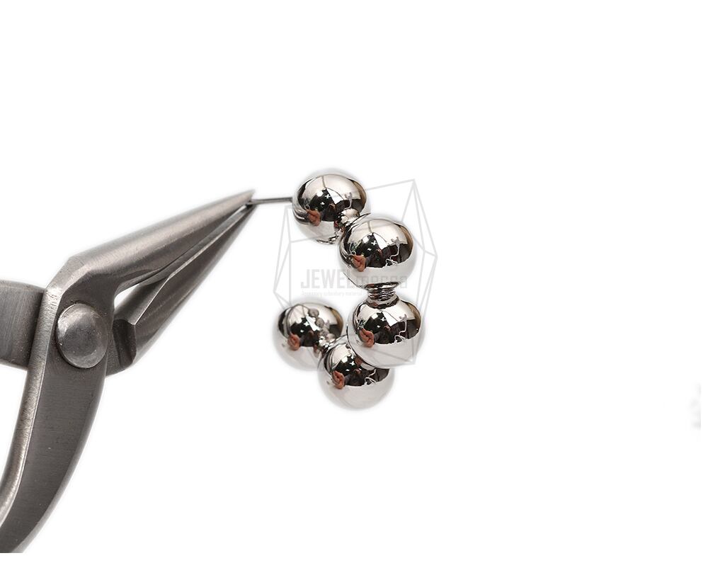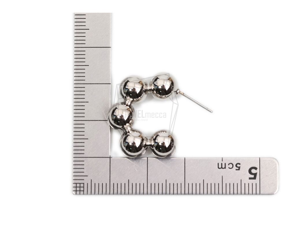 ERG-1929-R/2PCS/Multi ball round Post Earring/19mm X 23mm/Rhodium Plated over Brass, Stainless Post