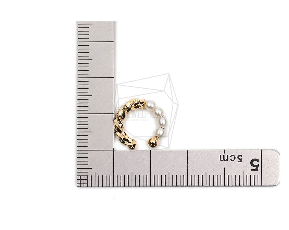 ERG-1941-G/2PCS/Round Earcuffs Earrings/14mm X 14mm/Gold Plated Over Brass,Imitation pearl