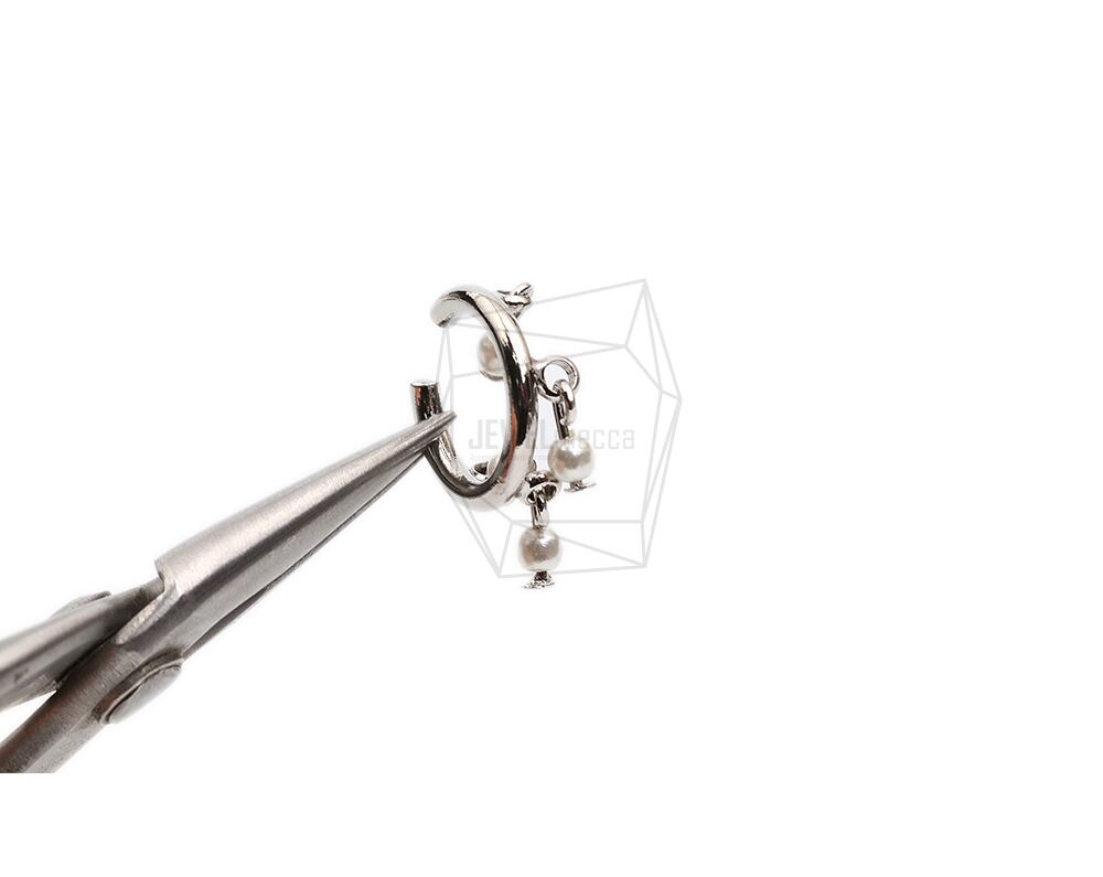 ERG-1944-R/2PCS/Round Earcuffs Earrings/13mm X 14mm/Rhodium Plated Over Brass,Imitation pearl