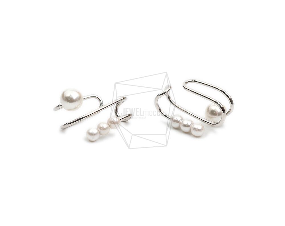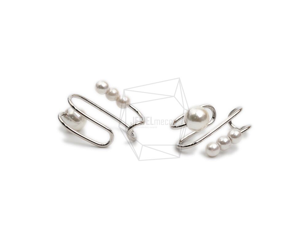 ERG-1945-R/2PCS/Round Earcuffs Earrings/16mm X 22mm/Rhodium Plated Over Brass,Imitation pearl