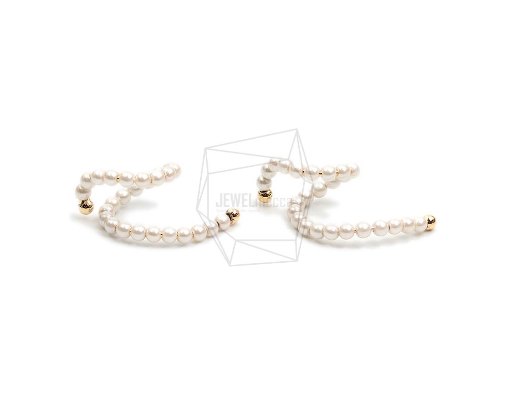 ERG-1947-G/2PCS/Round Earcuffs Earrings/12mm X 26mm/Gold Plated Over Brass,Imitation pearl