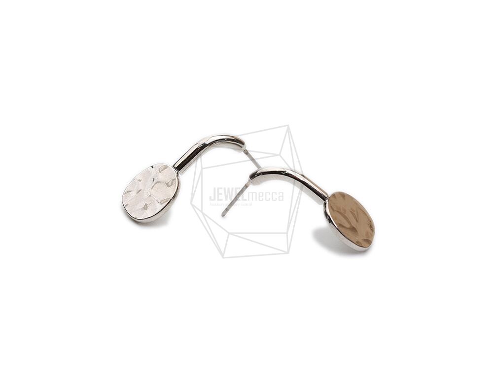 ERG-1948-R/2Pcs-Round bar Ear Post/ 11mm x 23mm /Rhodium Plated over Brass.Stainless Post